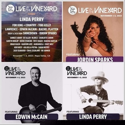 JORDIN SPARKS, LINDA PERRY, TORI KELLY, EDWIN MCCAIN, JAY ALLEN, AND OTHERS FEATURED AT LIVE IN THE VINEYARD (LITV) NOV. 1-3 IN NAPA CALIFORNIA. |
